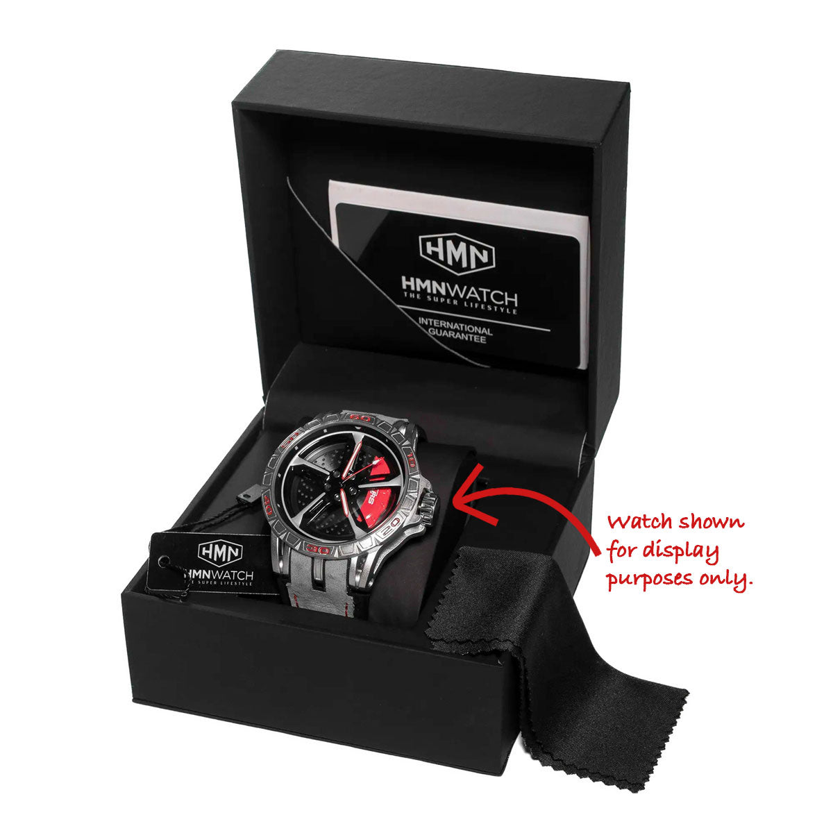 Presentamos HMN Watch , el reloj con ruedas de automóvil original y de primera calidad, una obra maestra de lujo y estilo. Con una caja de acero inoxidable, un movimiento de cuarzo japonés Miyota y un cristal de zafiro resistente a los arañazos , este reloj garantiza una durabilidad y precisión excepcionales.